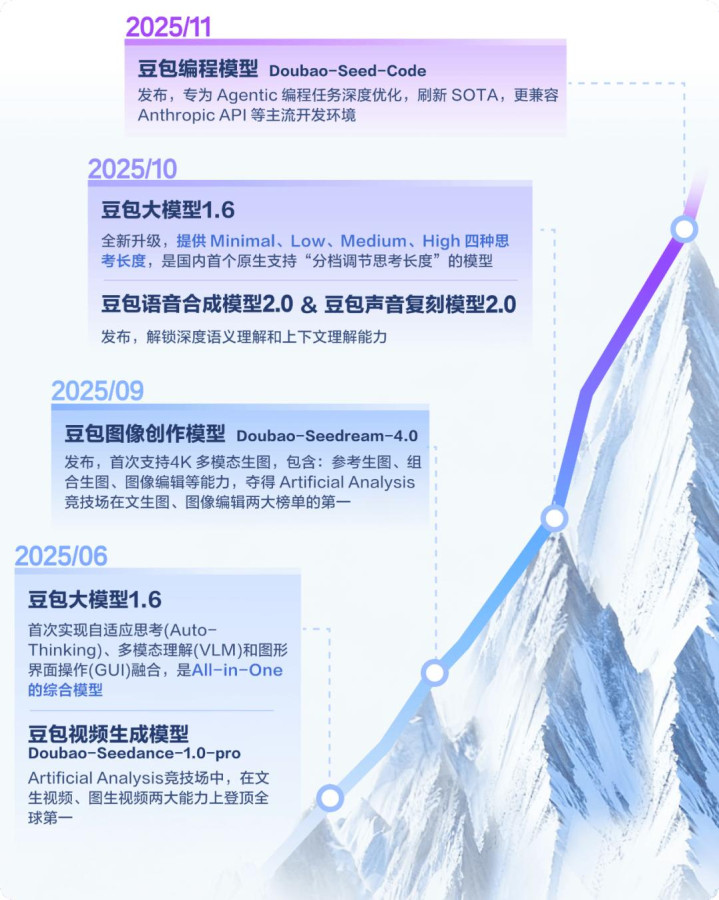 于是,豆包大模型家族和火山方舟服务平台的搭配,直接把火山引擎带到了这场新型工业革命的风口尖上,在视线范围内技压群雄。