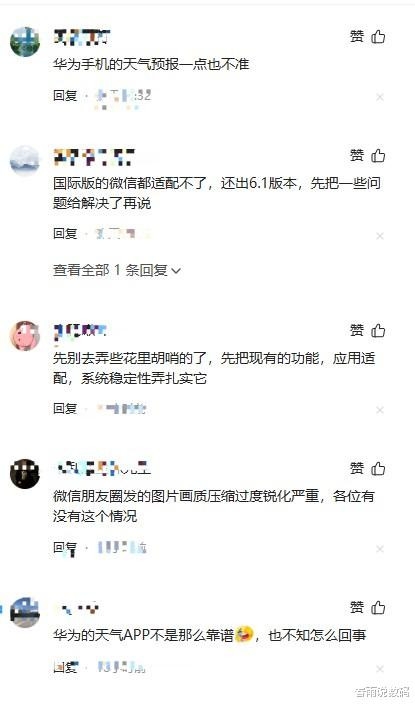 有用户直接表示:华为手机天气预报一点都不准。还有人吐槽:国际版微信都适配不了,还出6.1版本。更有人反馈不满:别去弄这些花里胡哨的的,把现有的功能、应用适配。为什么会出现这种奇怪的现象呢?我认为有两点可讲。