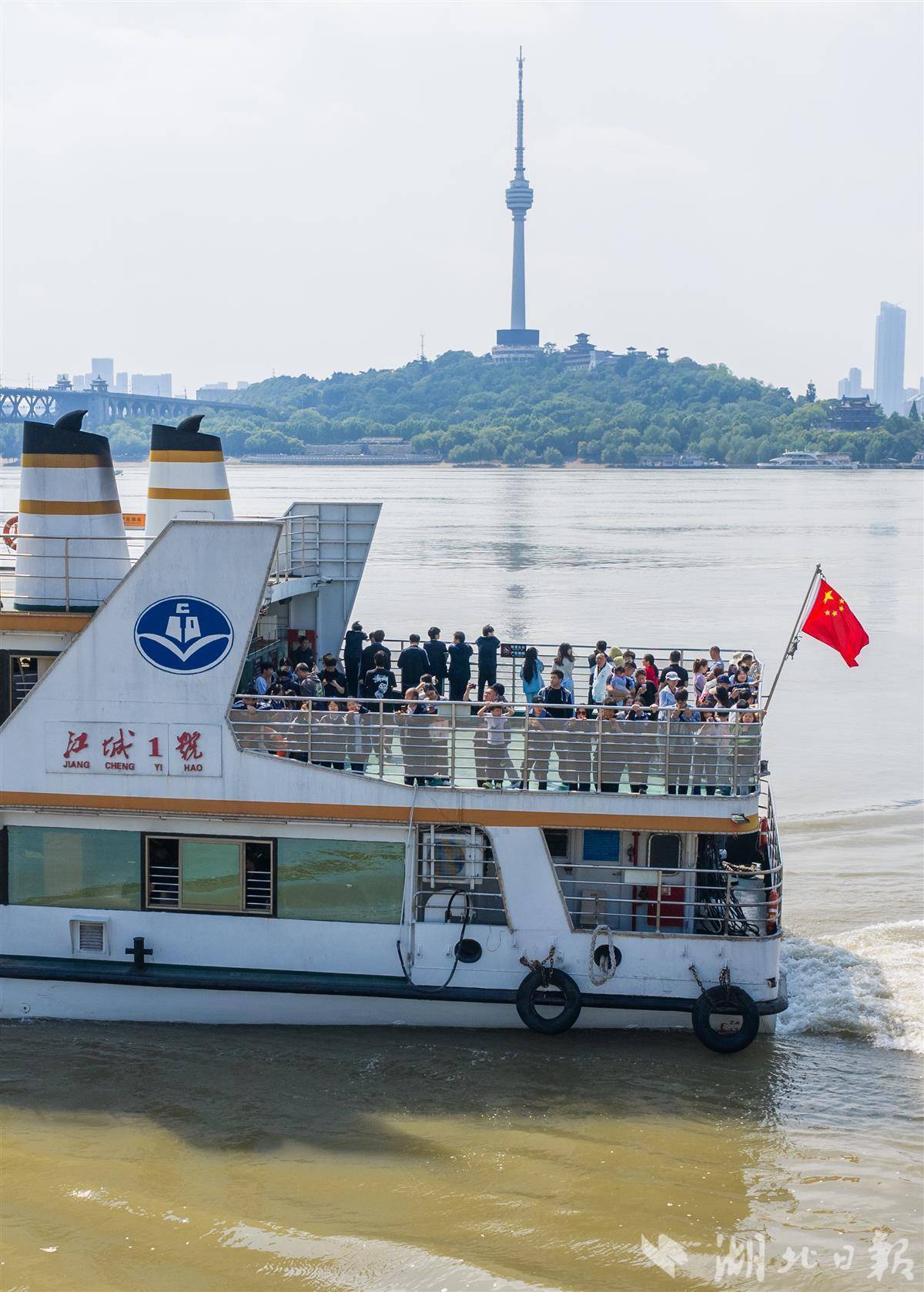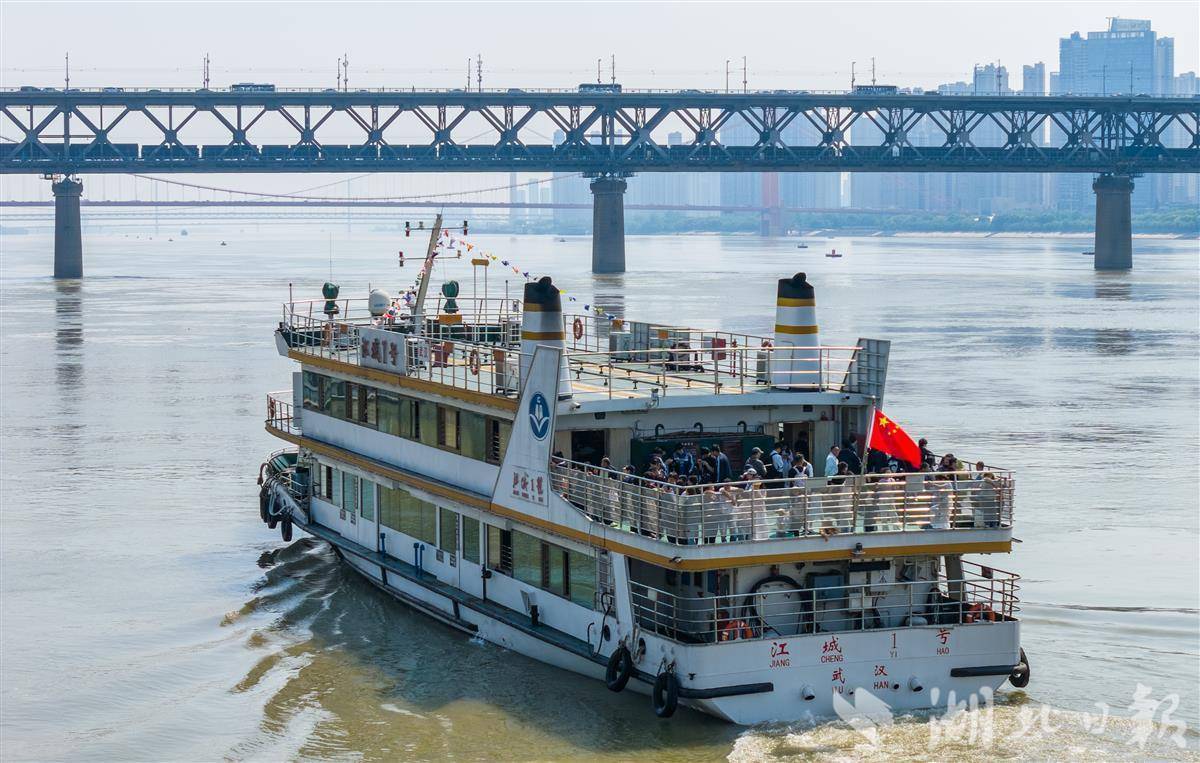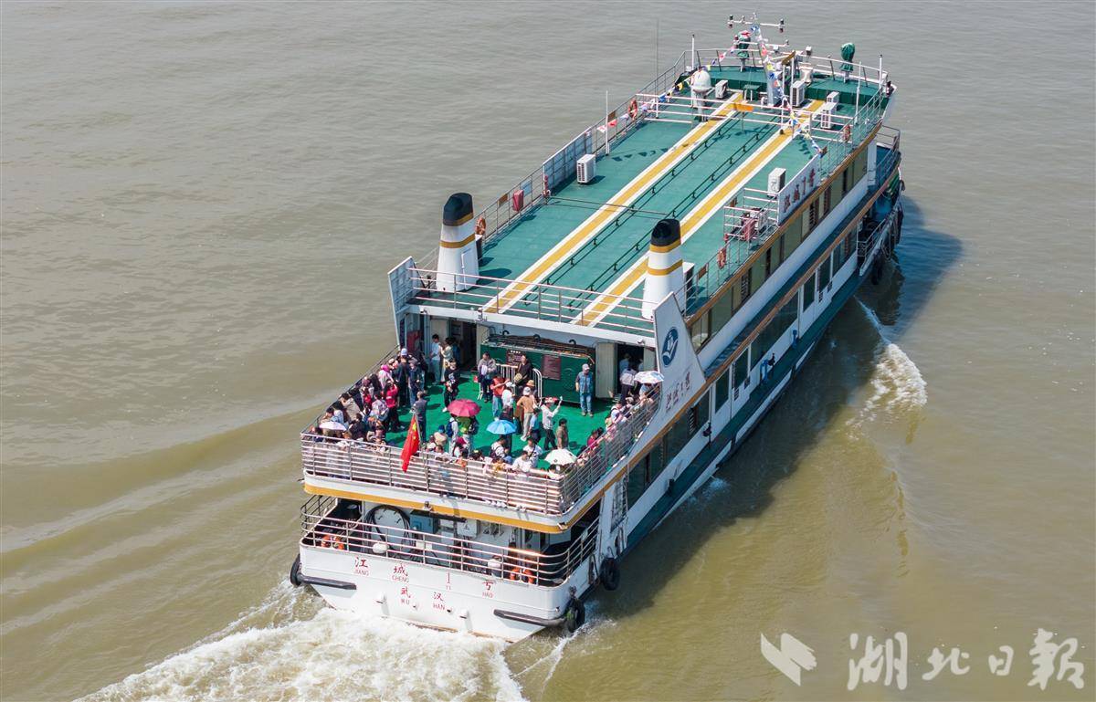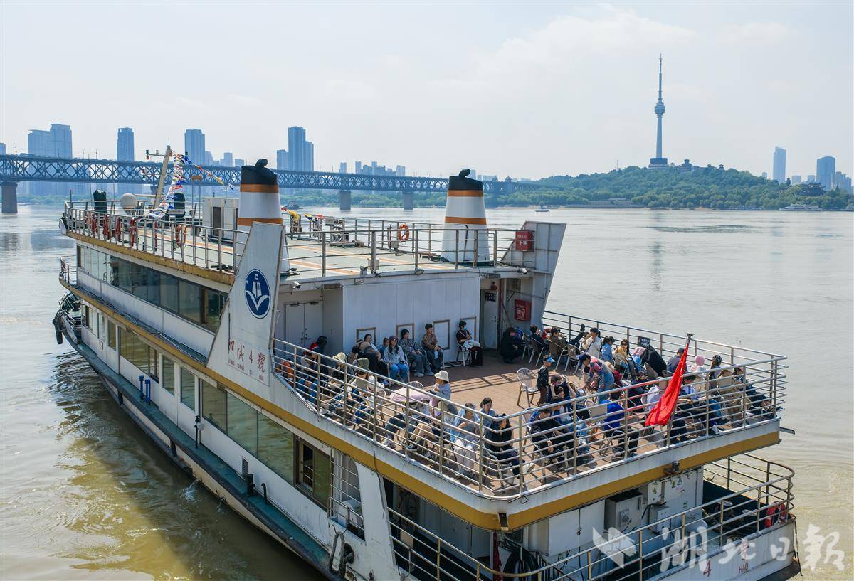 4月30日,武汉中华路码头,游客络绎不绝。武汉轮渡二层甲板重启后人气十足,不少外地游客专程前来打卡,凭栏远眺长江大桥、黄鹤楼,江风拂面,尽赏两江四岸风光。(湖北日报全媒记者 薛婷 摄)
